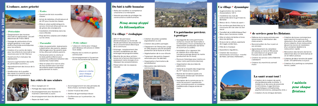 Malgré les crises que nous avons rencontrées durant ce mandat, nous avons gardé le cap fixé, tenu nos engagements et réalisé de nombreux projets non prévus pour améliorer la qualité de vie des Briataux.